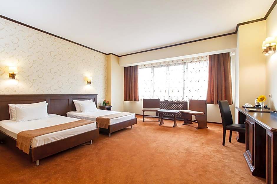 Spacious, air-conditioned room with satellite TV, a mini-bar and a kettle. The private bathroom is provided with a hairdryer and free toiletries, as well as with bathrobes and slippers.